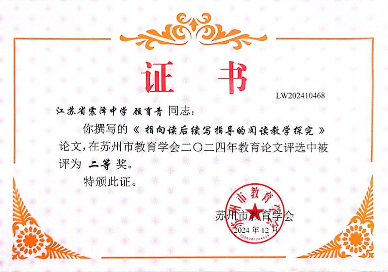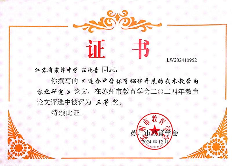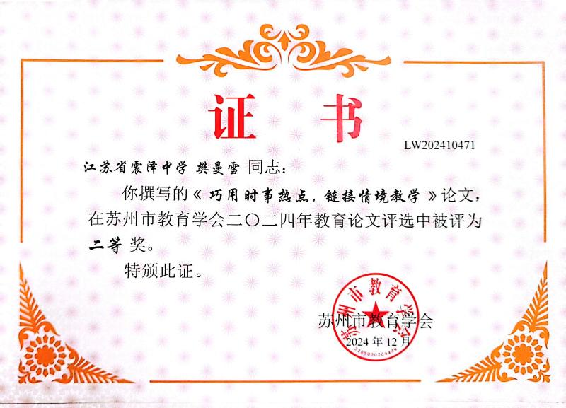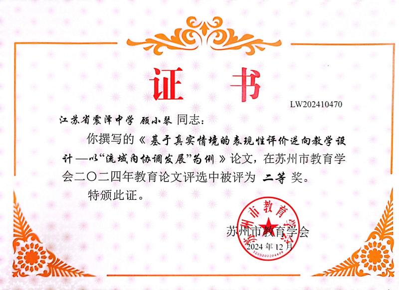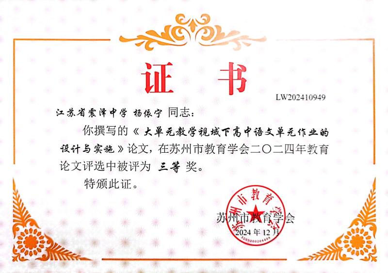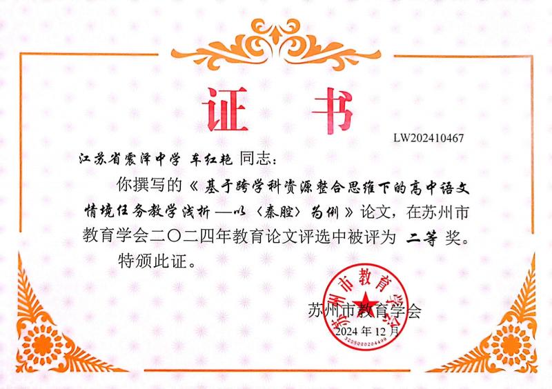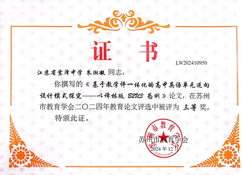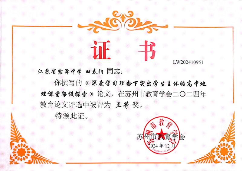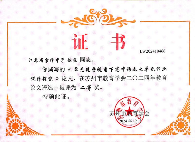我校教师在2024年度苏州市教育学会论文评比中获奖