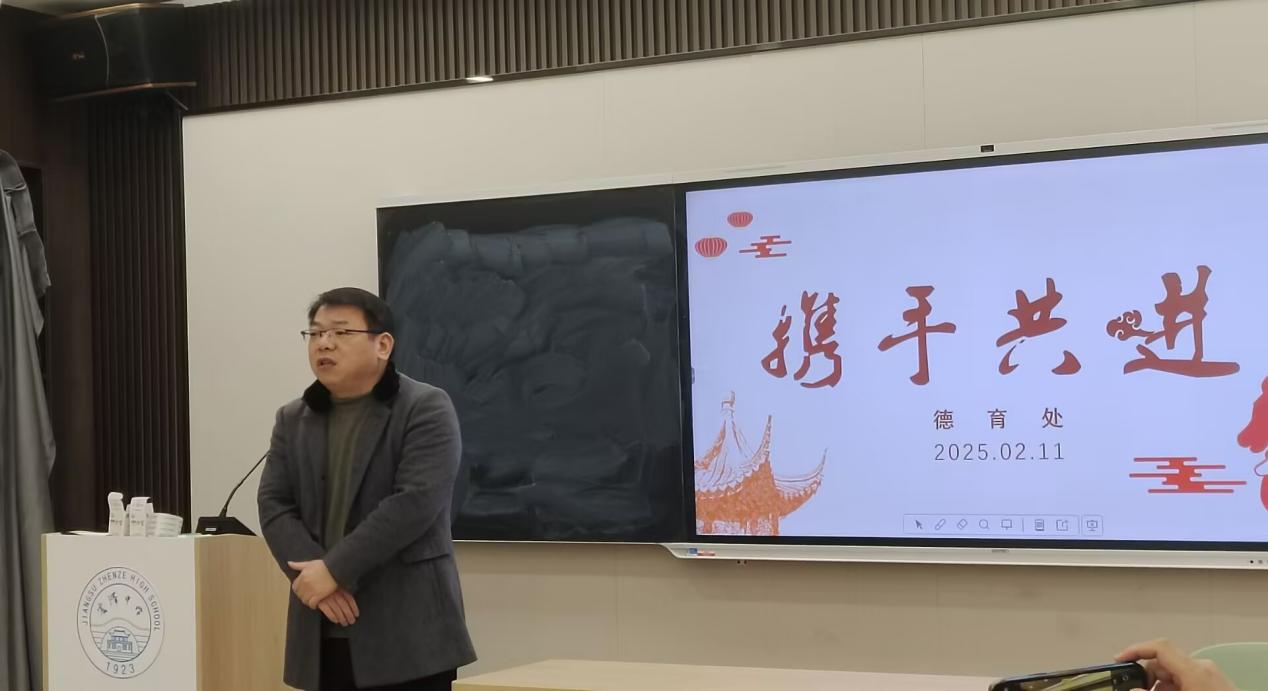 王彬主任强调了本学期德育工作的计划和工作重点。戴小祥副校长要求每一位班主任继续做好润心家访工作,重视劳动教育,在新的一学期携手共进,推动我校德育工作继续规范化、常态化开展。