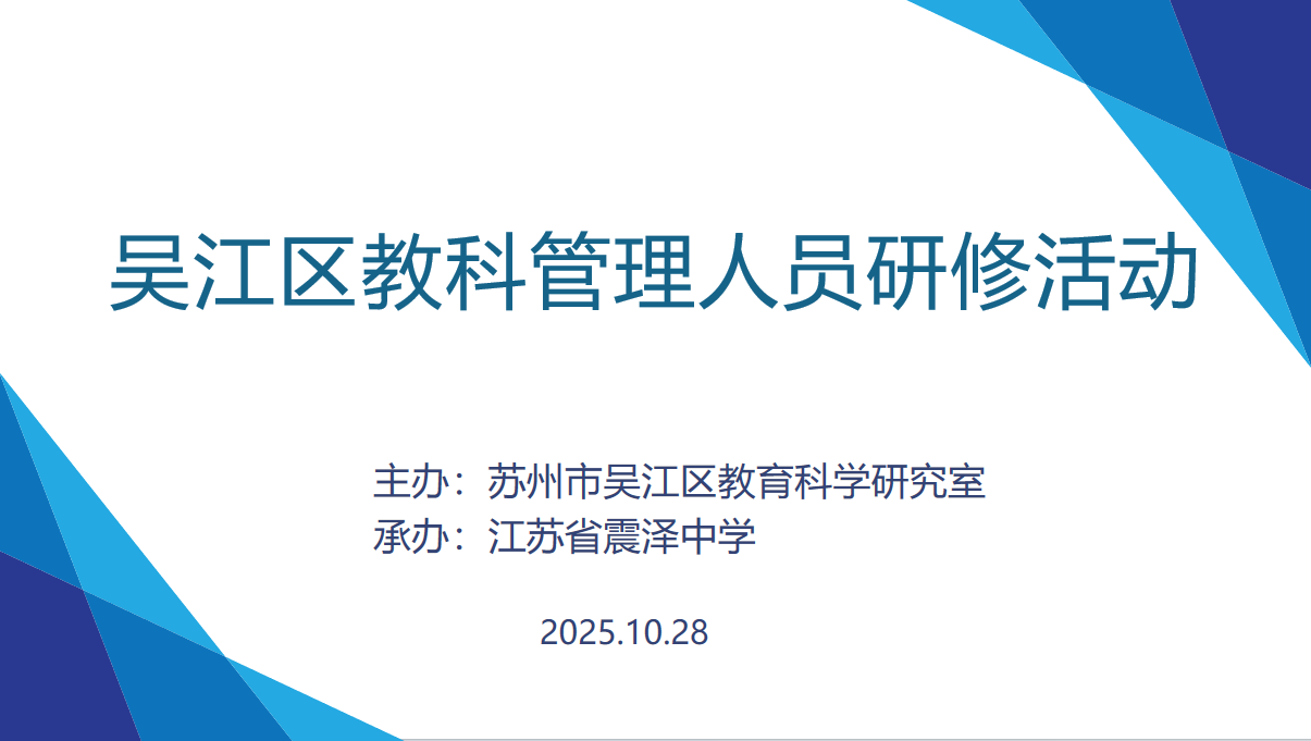 为进一步加强吴江区教育科研管理队伍建设,提升教科研管理水平与实践能力,统筹推进全区教育科研工作高质量发展,10月28日,由吴江区教育科学研究室组织的全区教科管理人员研修活动在我校图书馆三楼报告厅举行。全区各学校、幼儿园分管教科研工作的校、园级领导及教科主任参与了此次活动。活动由区教科室主任王丽娜主持。