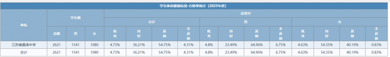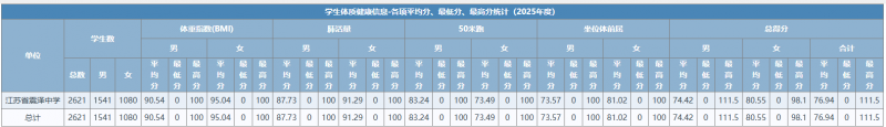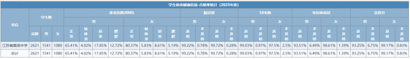 2025震泽中学学生体质监测排名公示和成绩优良体质监测情况公示